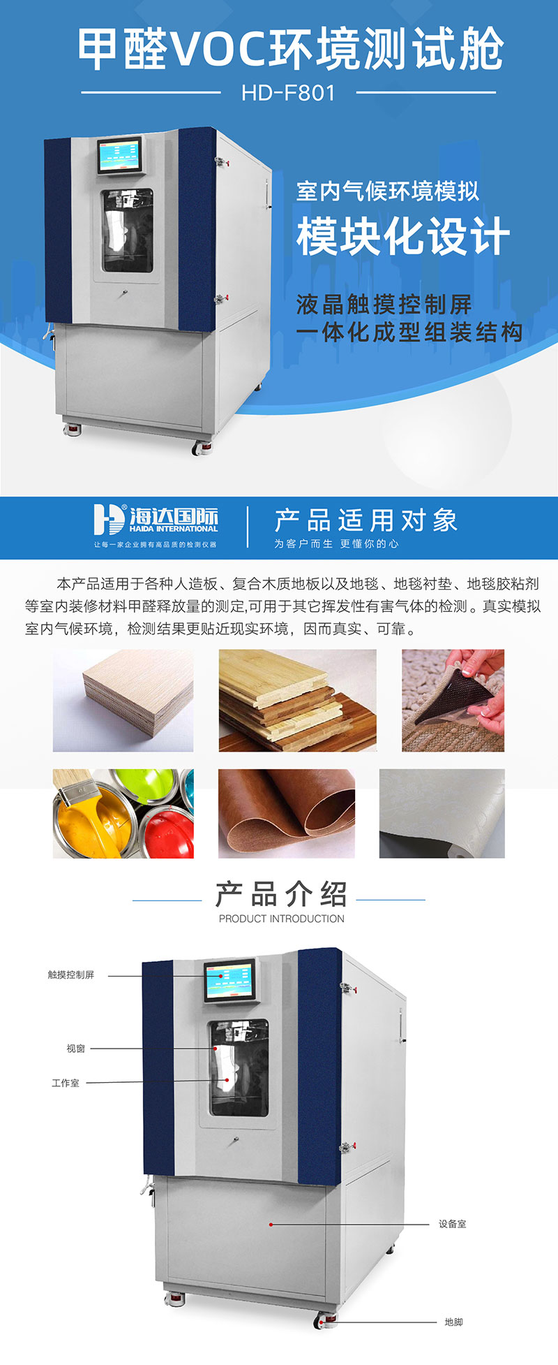 VOC甲醛試驗(yàn)箱是根據(jù)國標(biāo)GB18580-2017和ASTMD6007-2、EN717-1、ANSI/BIFMAX7.1-2007開發(fā)的一套專門針對板材TVOC總揮發(fā)物檢測的1m3氣候箱,其特點(diǎn)是可最大限度的模擬室內(nèi)氣候環(huán)境,檢測結(jié)果更貼近現(xiàn)實(shí)環(huán)境,因而真實(shí)、可靠。