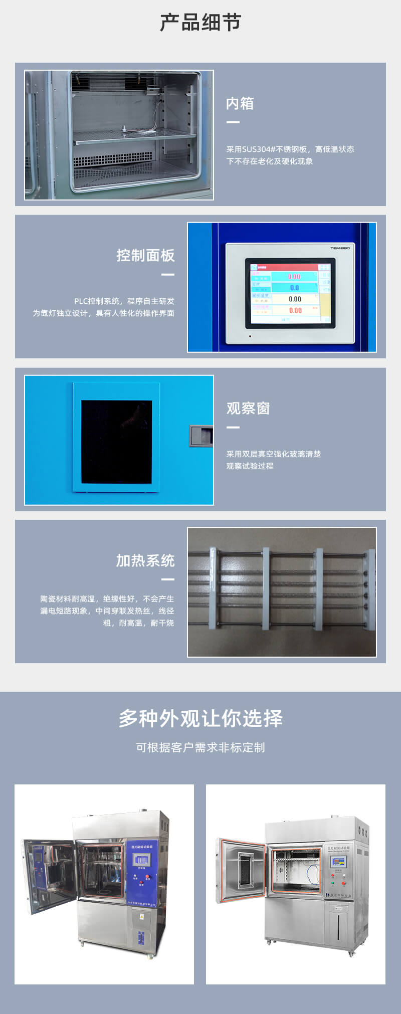 氙燈老化試驗箱模擬全陽光光譜的氙弧燈再現(xiàn)不同環(huán)境下存在的破壞性光波,SN型氙燈耐氣侯試驗箱可用于新材料的選擇、改變現(xiàn)有材料或評估材料組成變化后耐用性的變化試驗,可以很好的模擬在不同環(huán)境條件下,材料暴露在陽光下所產(chǎn)生的變化。